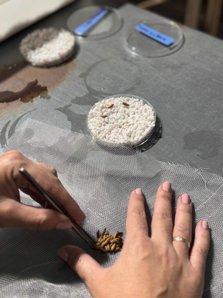 Una de las actividades clave del Proyecto PROLIVE es la obtención de nuevas variedades de olivo con mayor resiliencia frente a las condiciones climáticas actuales. Durante la pasada primavera se realizaron los cruzamientos programados y, tras la recolección de los frutos, estos fueron sometidos a procesos de estratificación. Actualmente ha comenzado la germinación y se prevé obtener en torno a 100 fenotipos distintos, que serán plantados la próxima primavera para iniciar su caracterización agronómica y fisiológica.